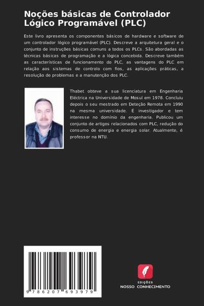 Este livro apresenta os componentes básicos de hardware e software de um controlador lógico programável (PLC). Descreve a arquitetura geral e o conjunto de instruções básicas comuns a todos os PLCs. São abordadas as técnicas básicas de programação e a lógica concebida. Descreve também as características de funcionamento do PLC, as vantagens do PLC em relação aos sistemas de controlo com fios, as aplicações práticas, a resolução de problemas e a manutenção dos PLC.