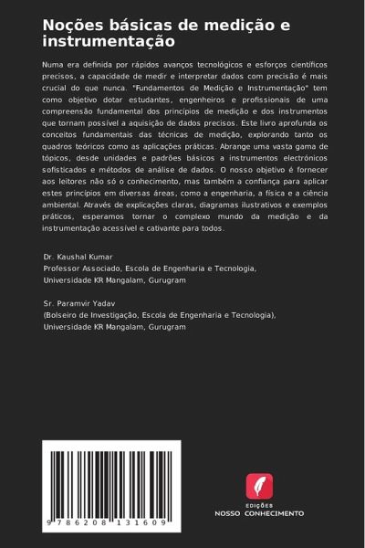 Numa era definida por rápidos avanços tecnológicos e esforços científicos precisos, a capacidade de medir e interpretar dados com precisão é mais crucial do que nunca. "Fundamentos de Medição e Instrumentação" tem como objetivo dotar estudantes, engenheiros e profissionais de uma compreensão fundamental dos princípios de medição e dos instrumentos que tornam possível a aquisição de dados precisos. Este livro aprofunda os conceitos fundamentais das técnicas de medição, explorando tanto os quadros teóricos como as aplicações práticas. Abrange uma vasta gama de tópicos, desde unidades e padrões básicos a instrumentos electrónicos sofisticados e métodos de análise de dados. O nosso objetivo é fornecer aos leitores não só o conhecimento, mas também a confiança para aplicar estes princípios em diversas áreas, como a engenharia, a física e a ciência ambiental. Através de explicações claras, diagramas ilustrativos e exemplos práticos, esperamos tornar o complexo mundo da medição e da instrumentação acessível e cativante para todos.