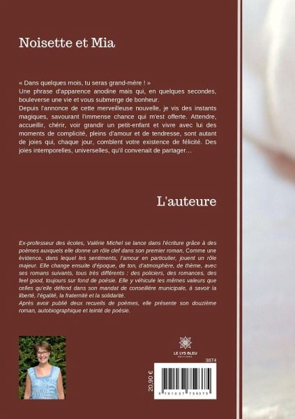 Ex-professeur des écoles, Valérie Michel se lance dans l¿écriture grâce à des poèmes auxquels elle donne un rôle clef dans son premier roman, Comme une évidence, dans lequel les sentiments, l¿amour en particulier, jouent un rôle majeur. Elle change ensuite d¿époque, de ton, d¿atmosphère, de thème, avec ses onze romans suivants, tous très différents : des policiers, des romances, des feel good, des destins de femmes, toujours sur fond de poésie. Elle publie ensuite divers recueils de poèmes sur des sujets variés : les caractères humains, les déclinaisons de l¿amour, les grands thèmes sociétaux du XXI siècle, les émotions enfantines, la peinture, les énigmes, les corporations, les beaux paysages et sites culturels français, le règne animal, la phonétique, la ville de Saint-Raphaël. Elle propose aujourd¿hui un regard poétique sur la photographie.