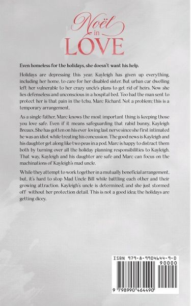 Trust is the hardest gift to give. Holidays are depressing this year. Kayleigh has given up everything, including her home, to care for her disabled sister. But urban car dwelling left her vulnerable to her crazy uncle's plans to get rid of heirs. Now she lies defenseless and unconscious in a hospital bed. Too bad the man sent to protect her is that pain in the tchu, Marc Richard. Not a problem; this is a temporary arrangement. As a single father, Marc knows the most important thing is keeping those you love safe. Even if it means safeguarding that rabid bunny, Kayleigh Breaux. She has gotten on his ever-loving last nerve since she first intimated he was an idiot while treating his concussion. The good news is Kayleigh and his daughter get along like two peas in a pod. Marc is happy to distract them both by turning over all the holiday planning responsibilities to Kayleigh. That way, Kayleigh and his daughter are safe and Marc can focus on the machinations of Kayleigh's mad uncle. While they attempt to work together in a mutually beneficial arrangement, but, it's hard to stop Mad Uncle Bill while battling each other and their growing attraction. Kayleigh's uncle is determined, and she stormed off mad without her protection detail. This is not a good idea; the holidays are getting dicey. This small-town romance features a forced proximity and holiday relationship story between a snarky, stoic female main character and a strong, controlling man and, of course, an HEA. This is the fourth in a series and can be read as a stand-alone, but is best read in sequence. Please see the preview for content warnings. Set in the heart of Cajun Country, this Southern Contemporary story will keep you entertained. Enjoy!