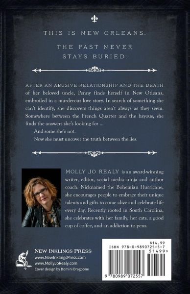 "You must allow yourself to know what you know, and feel what you feel." This is New Orleans. The past never stays buried. After an abusive relationship and the death of her beloved uncle, Penny finds herself in New Orleans, embroiled in a murderous love story. In search of something she can't identify, she discovers things aren't always as they seem. Somewhere between the French Quarter and the bayous, she finds the answers she's looking for … And some she's not. Now she must uncover the truth between the lies. In Molly Jo Realy's breakout novel, very little is as it seems, including Penny's self-identity. This southern romantic location-mystery set in the Big Easy is filled with all that makes New Orleans a wonderful character herself. Grab a beignet or a warm bowl of gumbo, and follow Penny on her journey to find the truth about her old life, her new friends, and the pieces of herself she needs to reclaim.