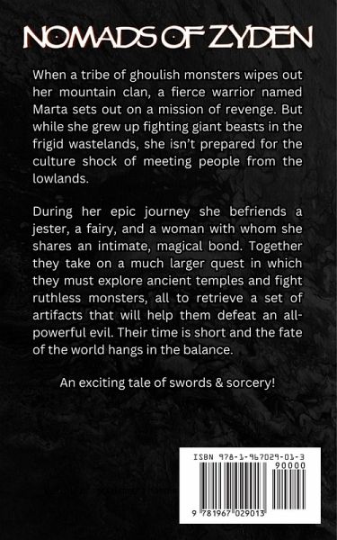 When a tribe of ghoulish monsters wipes out her mountain clan, a fierce warrior named Marta sets out on a mission of revenge. But while she grew up fighting giant beasts in the frigid wastelands, she isn't prepared for the culture shock of meeting people from the lowlands. During her epic journey she befriends a jester, a fairy, and a woman with whom she shares a magical bond. Together they take on a much larger quest in which they must explore ancient temples and fight ruthless monsters, all to retrieve a set of artifacts that will help them defeat an all-powerful evil. Their time is short and the fate of the world hangs in the balance.