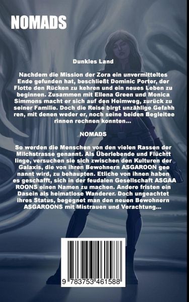 Dunkles LandNachdem die Mission der Zora ein unvermitteltes Ende gefunden hat, beschließt Dominic Porter, der Flotte den Rücken zu kehren und ein neues Leben zu beginnen. Zusammen mit Ellena Green und Monica Simmons macht er sich auf den Heimweg, zurück zu seiner Familie. Doch die Reise birgt unzählige Gefahren, mit denen weder er, noch seine beiden Begleiterinnen rechnen konnten...NOMADSSo werden die Menschen von den vielen Rassen der Milchstrasse genannt. Als Überlebende und Flüchtlinge, versuchen sie sich zwischen den Kulturen der Galaxis, die von ihren Bewohnern ASGAROON genannt wird, zu behaupten. Etliche von ihnen haben es geschafft, sich in der feudalen Gesellschaft ASGAROONS einen Namen zu machen. Andere fristen ein Dasein als heimatlose Wanderer. Doch ungeachtet ihres Status, begegnet man den neuen Bewohnern ASGAROONS mit Mistrauen und Verachtung...