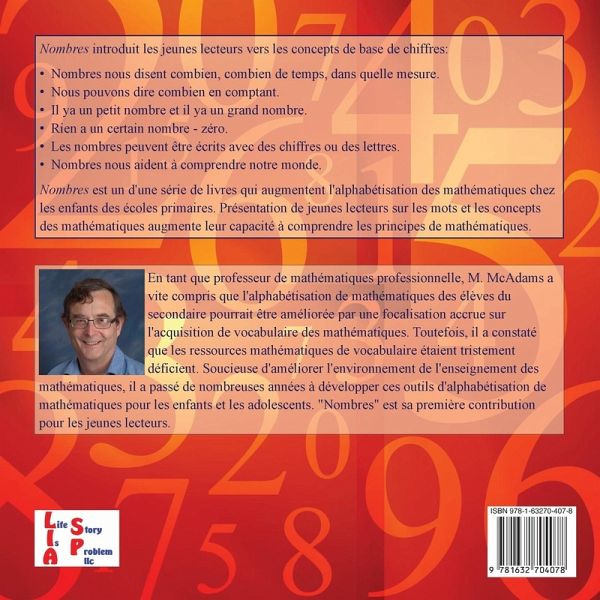 Nombres introduit les jeunes lecteurs vers les concepts de base de chiffres:Nombres nous disent combien, combien de temps, dans quelle mesure. Nous pouvons dire combien en comptant. Il ya un petit nombre et il ya un grand nombre. Rien a un certain nombre - zéro. Les nombres peuvent être écrits avec des chiffres ou des lettres. Nombres nous aident à comprendre notre monde. Nombres est un d'une série de livres qui augmentent l'alphabétisation des mathématiques chez les enfants des écoles primaires. Présentation de jeunes lecteurs sur les mots et les concepts des mathématiques augmente leur capacité à comprendre les principes de mathématiques.