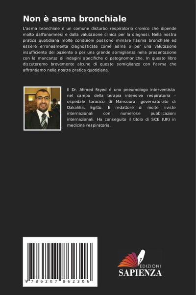 L'asma bronchiale è un comune disturbo respiratorio cronico che dipende molto dall'anamnesi e dalla valutazione clinica per la diagnosi. Nella nostra pratica quotidiana molte condizioni possono mimare l'asma bronchiale ed essere erroneamente diagnosticate come asma o per una valutazione insufficiente del paziente o per una grande somiglianza nella presentazione con la mancanza di indagini specifiche o patognomoniche. In questo libro discuteremo brevemente alcune di queste somiglianze con l'asma che affrontiamo nella nostra pratica quotidiana.