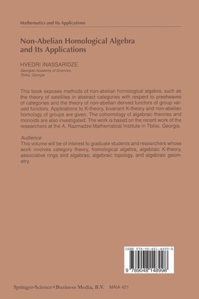 While in classical (abelian) homological algebra additive functors from abelian (or additive) categories to abelian categories are investigated , non- abelian homological algebra deals with non-additive functors and their homological properties , in particular with functors having values in non-abelian categories. Such functors haveimportant applications in algebra, algebraic topology, functional analysis, algebraic geometry and other principal areas of mathematics. To study homological properties of non-additive functors it is necessary to define and investigate their derived functors and satellites. It will be the aim of this book based on the results of researchers of A. Razmadze Mathematical Institute of the Georgian Academy of Sciences devoted to non-abelian homological algebra. The most important considered cases will be functors from arbitrary categories to the category of modules, group valued functors and commutative semigroup valued functors. In Chapter I universal sequences of functors are defined and in vestigated with respect to (co)presheaves of categories, extending in a natural way the satellites of additive functors to the non-additive case and generalizing the classical relative homological algebra in additive categories to arbitrary categories. Applications are given in the furth coming chapters. Chapter II is devoted to the non-abelian derived functors of group valued functors with respect to projective classes using projective pseu dosimplicial resolutions. Their functorial properties (exactness, Milnor exact sequence, relationship with cotriple derived functors, satellites and Grothendieck cohomology, spectral sequence of an epimorphism, degree of an arbitrary functor) are established and applications to ho mology and cohomology of groups are given.
