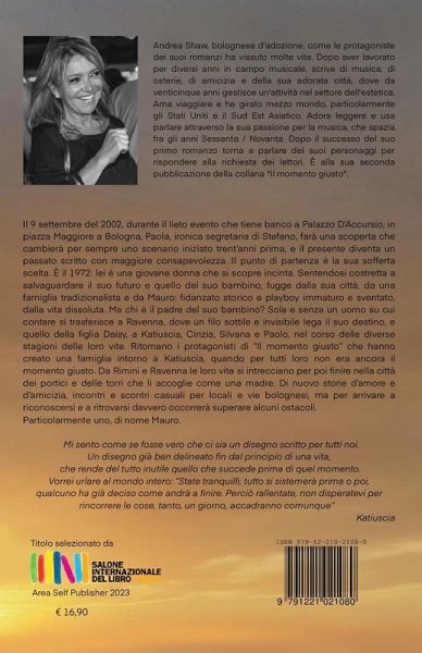 Titolo selezionato dall'edizione 2023 del Salone Internazionale del Libro di Torino per l'area Self publisher. Il 9 settembre del 2002, durante il lieto evento che tiene banco a Palazzo D'Accursio, in piazza Maggiore a Bologna, Paola, ironica segretaria di Stefano, farà una scoperta che cambierà per sempre uno scenario iniziato trent'anni prima, e il presente diventa un passato scritto con maggiore consapevolezza. Il punto di partenza è la sua sofferta scelta. E' il 1972: lei è una giovane donna che si scopre incinta. Sentendosi costretta a salvaguardare il suo futuro e quello del suo bambino, fugge dalla sua città, da una famiglia tradizionalista e da Mauro: fidanzato storico e playboy immaturo e sventato, dalla vita dissoluta. Ma chi è il padre del suo bambino? Sola e senza un uomo su cui contare si trasferisce a Ravenna, dove un filo sottile e invisibile lega il suo destino, e quello della figlia Daisy, a Katiuscia, Cinzia, Silvana e Paolo, nel corso delle diverse stagioni delle loro vite. Ritornano i protagonisti di "Il momento giusto" che hanno creato una famiglia intorno a Katiuscia, quando per tutti loro non era ancora il momento giusto. Da Rimini e Ravenna le loro vite si intrecciano per poi finire nella città dei portici e delle torri che li accoglie come una madre. Di nuovo storie d'amore e d'amicizia, incontri e scontri casuali per locali e vie bolognesi, ma per arrivare a riconoscersi e a ritrovarsi davvero occorrerà superare alcuni ostacoli. >Mi sento come se fosse vero che ci sia un disegno scritto per tutti noi. Un disegno già ben delineato fin dal principio di una vita, che rende del tutto inutile quello che succede prima di quel momento. Vorrei urlare al mondo intero: "State tranquilli, tutto si sistemerà prima o poi, qualcuno ha già deciso come andrà a finire. Perciò rallentate, non disperatevi per rincorrere le cose, tanto, un giorno, accadranno comunque". Katiuscia Il romanzo è auto-conclusivo ma è il secondo della collana "Il momento giusto"