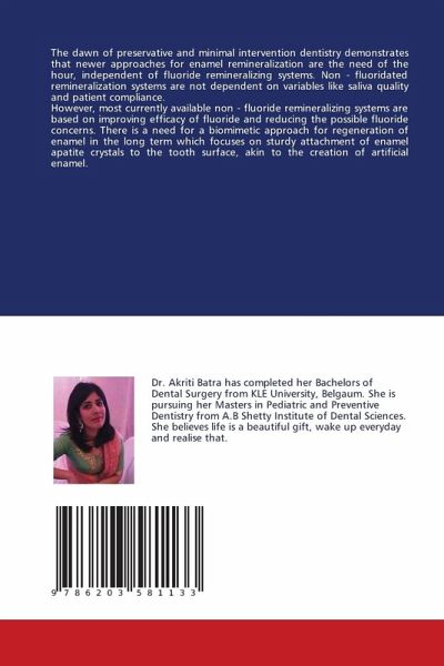 The dawn of preservative and minimal intervention dentistry demonstrates that newer approaches for enamel remineralization are the need of the hour, independent of fluoride remineralizing systems. Non - fluoridated remineralization systems are not dependent on variables like saliva quality and patient compliance.However, most currently available non - fluoride remineralizing systems are based on improving efficacy of fluoride and reducing the possible fluoride concerns. There is a need for a biomimetic approach for regeneration of enamel in the long term which focuses on sturdy attachment of enamel apatite crystals to the tooth surface, akin to the creation of artificial enamel.