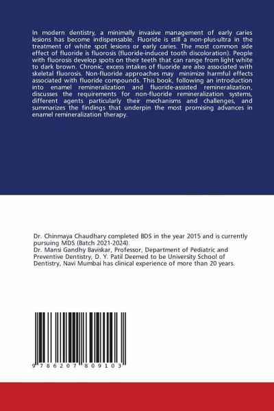 In modern dentistry, a minimally invasive management of early caries lesions has become indispensable. Fluoride is still a non-plus-ultra in the treatment of white spot lesions or early caries. The most common side effect of fluoride is fluorosis (fluoride-induced tooth discoloration). People with fluorosis develop spots on their teeth that can range from light white to dark brown. Chronic, excess intakes of fluoride are also associated with skeletal fluorosis. Non-fluoride approaches may minimize harmful effects associated with fluoride compounds. This book, following an introduction into enamel remineralization and fluoride-assisted remineralization, discusses the requirements for non-fluoride remineralization systems, different agents particularly their mechanisms and challenges, and summarizes the findings that underpin the most promising advances in enamel remineralization therapy.