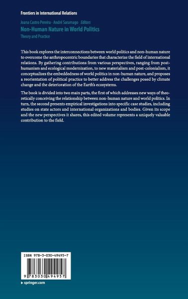 The book is divided into two main parts, the first of which addresses new ways of theoretically conceiving the relationship between non-human nature and world politics. In turn, the second presents empirical investigations into specific case studies, including studies on state actors and international organizations and bodies. Given its scope and the new perspectives it shares, this edited volume represents a uniquely valuable contribution to the field.