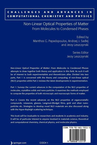 Non-Linear Optical Properties of Matter: From Molecules to Condensed Phases attempts to draw together both theory and application in this field. As such it will be of interest to both experimentalists and theoreticians alike. Divided into two parts, Part 1 is concerned with the theory and computing of non-linear optical (NLO) properties while Part 2 reviews the latest developments in experimentation.