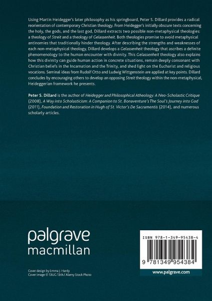 Using Martin Heidegger's later philosophy as his springboard, Peter S. Dillard provides a radical reorientation of contemporary Christian theology. From Heidegger's initially obscure texts concerning the holy, the gods, and the last god, Dillard extracts two possible non-metaphysical theologies: a theology of Streit and a theology of Gelassenheit. Both theologies promise to avoid metaphysical antinomies that traditionally hinder theology. After describing the strengths and weaknesses of each non-metaphysical theology, Dillard develops a Gelassenheit theology that ascribes a definite phenomenology to the human encounter with divinity. This Gelassenheit theology also explains how this divinity can guide human action in concrete situations, remain deeply consonant with Christian beliefs in the Incarnation and the Trinity, and shed light on the Eucharist and Religious Vocations. Seminal ideas from Rudolf Otto and Ludwig Wittgenstein are applied at key points. Dillard concludes by encouraging others to develop an opposing Streit theology within the non-metaphysical, Heidegerrian framework he presents.