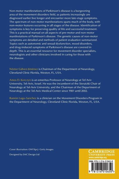 A comprehensive and practical manual describing the manifestations, pathophysiology and treatments for non-motor Parkinson's Disease. Topics covered in depth include autonomic and sexual dysfunction, mood disorders, sleep disturbances and drug-induced non-motor symptoms.