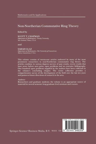 Commutative Ring Theory emerged as a distinct field of research in math ematics only at the beginning of the twentieth century. It is rooted in nine teenth century major works in Number Theory and Algebraic Geometry for which it provided a useful tool for proving results. From this humble origin, it flourished into a field of study in its own right of an astonishing richness and interest. Nowadays, one has to specialize in an area of this vast field in order to be able to master its wealth of results and come up with worthwhile contributions. One of the major areas of the field of Commutative Ring Theory is the study of non-Noetherian rings. The last ten years have seen a lively flurry of activity in this area, including: a large number of conferences and special sections at national and international meetings dedicated to presenting its results, an abundance of articles in scientific journals, and a substantial number of books capturing some of its topics. This rapid growth, andthe occasion of the new Millennium, prompted us to embark on a project aimed at presenting an overview of the recent research in the area. With this in mind, we invited many of the most prominent researchers in Non-Noetherian Commutative Ring Theory to write expository articles representing the most recent topics of research in this area.