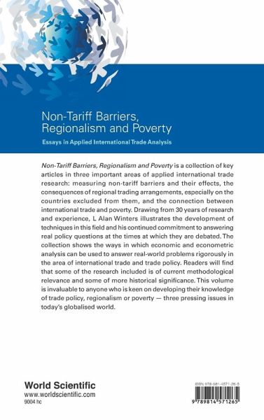 Non-Tariff Barriers, Regionalism and Poverty collects together some of the key articles in three important areas of applied international trade research: measuring non-tariff barriers and their effects, the consequences of regional trading arrangements, especially on the countries excluded from them, and the connection between international trade and poverty. Drawing from 30 years of research and experience, L Alan Winters illustrates the development of techniques of this field and his continued commitment to answering real policy questions at the times at which they are debated. The collection shows the ways in which economic and econometric analysis can be used to answer real-world problems rigorously in the area of international trade and trade policy. Readers will find that some of the research included is of current methodological relevance and some of more historical significance. This volume is invaluable to anyone who is keen on developing their knowledge on trade policy, regionalism or poverty three issues which are pressing ones in today's globalized world.