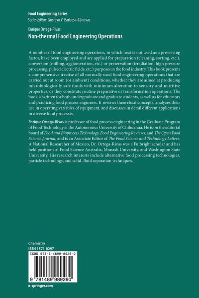 A number of food engineering operations, in which heat is not used as a preserving factor, have been employed and are applied for preparation (cleaning, sorting, etc.), conversion (milling, agglomeration, etc.) or preservation (irradiation, high pressure processing, pulsed electric fields, etc.) purposes in the food industry. This book presents a comprehensive treatise of all normally used food engineering operations that are carried out at room (or ambient) conditions, whether they are aimed at producing microbiologically safe foods with minimum alteration to sensory and nutritive properties, or they constitute routine preparative or transformation operations. The book is written for both undergraduate and graduate students, as well as for educators and practicing food process engineers. It reviews theoretical concepts, analyzes their use in operating variables of equipment, and discusses in detail different applications in diverse food processes.