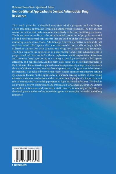 This book provides a detailed overview of the progress and challenges of non-traditional approaches for tackling antimicrobial resistance. The first chapter covers the factors that make microbes more likely to develop multidrug resistance. The book goes on to discuss the antimicrobial properties of propolis, essential oils and other microbial constituents that are used or under investigation to treat multidrug-resistant infections. Additionally, it covers alternative compounds that work as antimicrobial agents, their mechanisms of action, and how they might be utilized in conjunction with conventional drugs to circumvent drug resistance. The book explores the application of phage therapy and recent advancements in phage-based infection control with an emphasis on multidrug-resistant infections and discusses drug repurposing as a strategy to develop new antimicrobial agents efficiently and expeditiously. Additionally, it discusses the uses of nanoparticles in the treatment of infectionsbrought on by multidrug-resistant pathogens and examines the use of different nanotechnology-based approaches to fudge microbial resistance mechanisms. It concludes by reviewing recent studies on microbial quorum-sensing systems and focuses on the significance of quorum-sensing systems in controlling microbial resistance mechanisms and at the same time highlights the importance and role of antimicrobial stewardship program to fight microbial infections. The book is an invaluable source of knowledge and information for academics, basic and clinical researchers, clinicians, and paramedic staff involved in one way or the other in the development and use of antimicrobial agents and strategies to combat multidrug resistance.