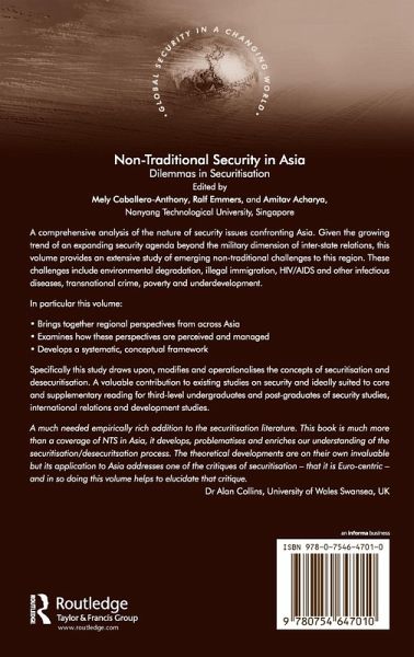 Contents: Preface; Understanding the dynamics of securitizing non-traditional security, Mely Caballero-Anthony and Ralf Emmers; Securitization matrix in South Asia: Bangladeshi migrants as enemy alien, Priyankar Upadhyaya; Malaysia's approach to Indonesian migrant labor: securitization, politics or catharsis?, Joseph Chinyong Liow; Securitizing Piracy in Southeast Asia: Malaysia, the International Maritime Bureau and Singapore, J.N. Mak; Securitizing small arms and drug trafficking in Indonesia, Riefqi Muna; Disease and the complex processes of securitization in the Asia-Pacific, Peter Chalk; Securitizing the AIDS issue in Asia, Ilavenil Ramiah; Securitizing health in violence affected areas of Indonesia, Samsu Rizal Panggabean; Poverty and the role of NGOs in protecting human security in Indonesia, Bob Hadiwinata; China in the Mekong river basin: the regional security implications of resource development on the Lancang Jiang, Evelyn Goh; Securitization in Asia: functional and normative implications, Amitav Acharya; Index.
