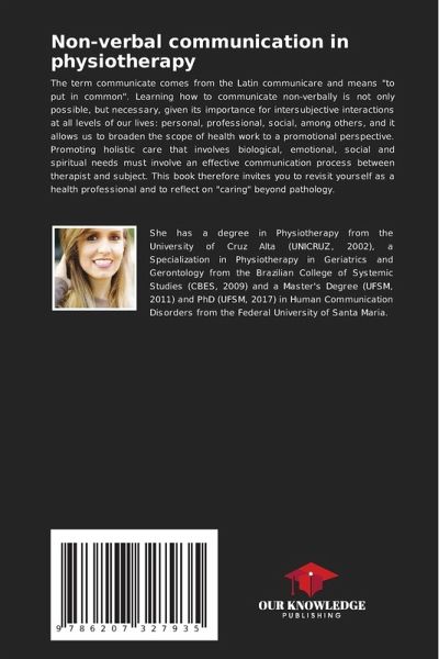 The term communicate comes from the Latin communicare and means "to put in common". Learning how to communicate non-verbally is not only possible, but necessary, given its importance for intersubjective interactions at all levels of our lives: personal, professional, social, among others, and it allows us to broaden the scope of health work to a promotional perspective. Promoting holistic care that involves biological, emotional, social and spiritual needs must involve an effective communication process between therapist and subject. This book therefore invites you to revisit yourself as a health professional and to reflect on "caring" beyond pathology.