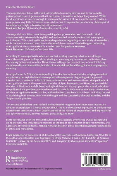 Noncognitivism in Ethics is an outstanding introduction to these theories, ranging from their early history through the latest contemporary developments. Beginning with a general introduction to metaethics, Mark Schroeder introduces and assesses three principal kinds of noncognitivist theory: the speech-act theories of Ayer, Stevenson, and Hare; the expressivist theories of Blackburn and Gibbard; and hybrid theories. He pays particular attention both to the philosophical problems about what moral facts could be about or how they could matter, which noncognitivism seeks to solve, and to the deep problems that it faces, including the task of explaining both the nature of moral thought and the complexity of moral attitudes, and the 'Frege-Geach' problem.