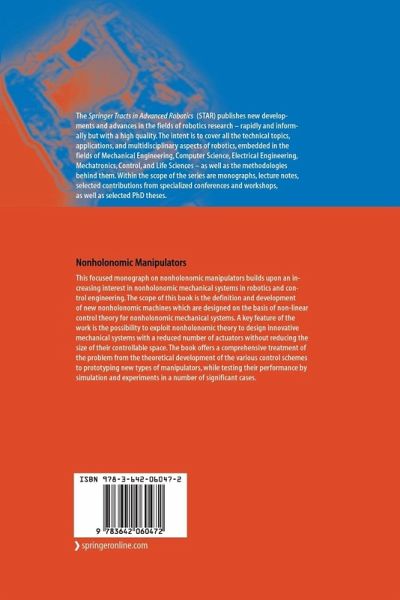 From the reviews of the first edition: "The presented monograph evolved from the author's Ph.D. dissertation ... . The work builds upon an increasing interest in nonholonomic mechanical systems which have attracted several researchers in control and robotics. A key feature of the book is the possibility to exploit nonholonomic theory to design innovative mechanical systems ... . The volume offers a comprehensive treatment of the problem from the theoretical development of the various control schemes to prototyping new types of manipulators ... ." (Bojidar Cheshankov, Zentralblatt MATH, Vol. 1074, 2005)