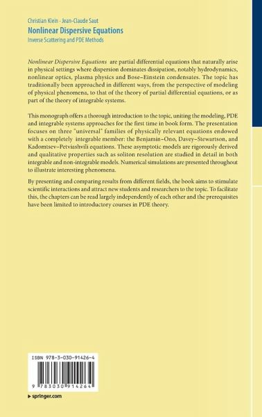 Nonlinear Dispersive Equations are partial differential equations that naturally arise in physical settings where dispersion dominates dissipation, notably hydrodynamics, nonlinear optics, plasma physics and Bose-Einstein condensates. The topic has traditionally been approached in different ways, from the perspective of modeling of physical phenomena, to that of the theory of partial differential equations, or as part of the theory of integrable systems.