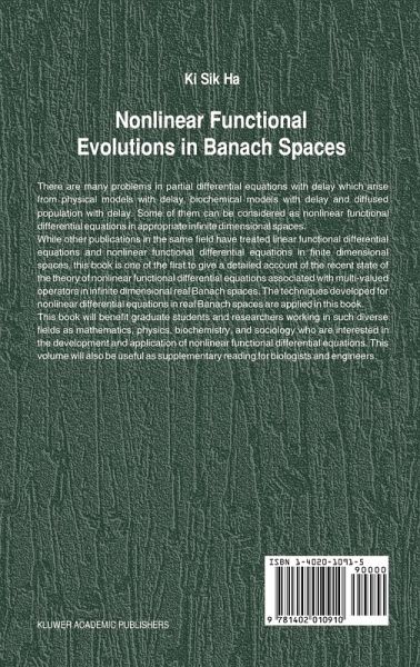 There are many problems in nonlinear partial differential equations with delay which arise from, for example, physical models, biochemical models, and social models. Some of them can be formulated as nonlinear functional evolutions in infinite-dimensional abstract spaces. Since Webb (1976) considered autonomous nonlinear functional evo lutions in infinite-dimensional real Hilbert spaces, many nonlinear an alysts have studied for the last nearly three decades autonomous non linear functional evolutions, non-autonomous nonlinear functional evo lutions and quasi-nonlinear functional evolutions in infinite-dimensional real Banach spaces. The techniques developed for nonlinear evolutions in infinite-dimensional real Banach spaces are applied. This book gives a detailed account of the recent state of theory of nonlinear functional evolutions associated with accretive operators in infinite-dimensional real Banach spaces. Existence, uniqueness, and stability for 'solutions' of nonlinear func tional evolutions are considered. Solutions are presented by nonlinear semigroups, or evolution operators, or methods of lines, or inequalities by Benilan. This book is divided into four chapters. Chapter 1 contains some basic concepts and results in the theory of nonlinear operators and nonlinear evolutions in real Banach spaces, that play very important roles in the following three chapters. Chapter 2 deals with autonomous nonlinear functional evolutions in infinite-dimensional real Banach spaces. Chapter 3 is devoted to non-autonomous nonlinear functional evolu tions in infinite-dimensional real Banach spaces. Finally, in Chapter 4 quasi-nonlinear functional evolutions are con sidered in infinite-dimensional real Banach spaces.