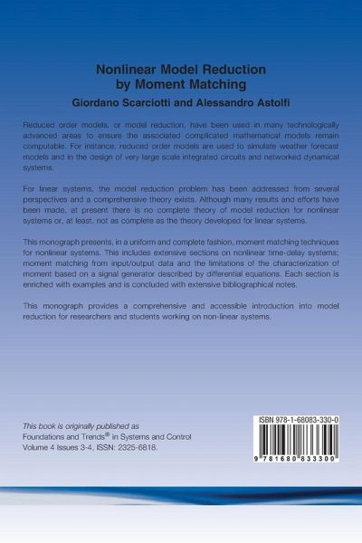 Reduced order models, or model reduction, have been used in many technologically advanced areas to ensure the associated complicated mathematical models remain computable. For instance, reduced order models are used to simulate weather forecast models and in the design of very large scale integrated circuits and networked dynamical systems. For linear systems, the model reduction problem has been addressed from several perspectives and a comprehensive theory exists. Although many results and efforts have been made, at present there is no complete theory of model reduction for nonlinear systems or, at least, not as complete as the theory developed for linear systems. This monograph presents, in a uniform and complete fashion, moment matching techniques for nonlinear systems. This includes extensive sections on nonlinear time-delay systems; moment matching from input/output data and the limitations of the characterization of moment based on a signal generator described by differential equations. Each section is enriched with examples and is concluded with extensive bibliographical notes. This monograph provides a comprehensive and accessible introduction into model reduction for researchers and students working on non-linear systems.