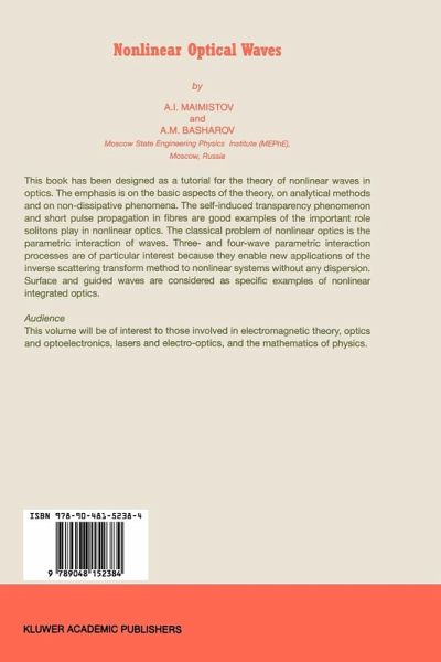 A non-linear wave is one of the fundamental objects of nature. They are inherent to aerodynamics and hydrodynamics, solid state physics and plasma physics, optics and field theory, chemistry reaction kinetics and population dynamics, nuclear physics and gravity. All non-linear waves can be divided into two parts: dispersive waves and dissipative ones. The history of investigation of these waves has been lasting about two centuries. In 1834 J. S. Russell discovered the extraordinary type of waves without the dispersive broadening. In 1965 N. J. Zabusky and M. D. Kruskal found that the Korteweg-de Vries equation has solutions of the solitary wave form. This solitary wave demonstrates the particle-like properties, i. e. , stability under propagation and the elastic interaction under collision of the solitary waves. These waves were named solitons. In succeeding years there has been a great deal of progress in understanding of soliton nature. Now solitons have become the primary components in many important problems of nonlinear wave dynamics. It should be noted that non-linear optics is the field, where all soliton features are exhibited to a great extent. This book had been designed as the tutorial to the theory of non-linear waves in optics. The first version was projected as the book covering all the problems in this field, both analytical and numerical methods, and results as well. However, it became evident in the process of work that this was not a real task.