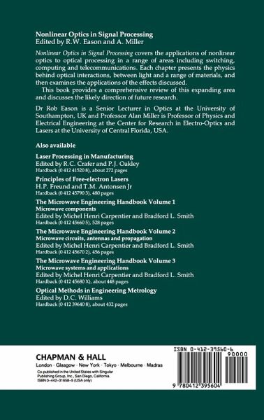 Nonlinear Optics in Signal Processing covers the applications of nonlinear optics to optical processing in a range of areas including switching, computing, and telecommunications.