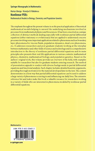 The emphasis throughout the present volume is on the practical application of theoretical mathematical models helping to unravel the underlying mechanisms involved in processes from mathematical physics and biosciences. It has been conceived as a unique collection of abstract methods dealing especially with nonlinear partial differential equations (either stationary or evolutionary) that are applied to understand concrete processes involving some important applications related to phenomena such as: boundary layer phenomena for viscous fluids, population dynamics,, dead core phenomena, etc. It addresses researchers and post-graduate students working at the interplay between mathematics and other fields of science and technology and is a comprehensive introduction to the theory of nonlinear partial differential equations and its main principles also presents their real-life applications in various contexts: mathematical physics, chemistry, mathematical biology, and population genetics. Based on the authors' original work, this volume provides an overview of the field, with examples suitable for researchers but also for graduate students entering research. The method of presentation appeals to readers with diverse backgrounds in partial differential equations and functional analysis. Each chapter includes detailed heuristic arguments, providing thorough motivation for the material developed later in the text. The content demonstrates in a firm way that partial differential equations can be used to address a large variety of phenomena occurring in and influencing our daily lives. The extensive reference list and index make this book a valuable resource for researchers working in a variety of fields and who are interested in phenomena modeled by nonlinear partial differential equations.