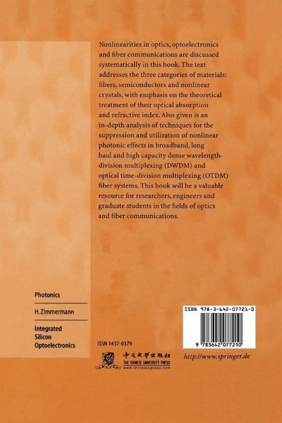 Nonlinearities and optics, optoelectronics and fiber communications are discussed systematically in this book. In a unified theoretical treatment, the book addresses the three categories of materials: fibers, semiconductors, and nonlinear crystals. In each case emphasis is placed on the nonlinear character of their refractive indices and optical absorption. The text also gives an in-depth analysis of the uses and limitations of phontonic nonlinearities with regard to wavelength division multiplexing and high-speed fiber communications. It will be of interest to graduate students as well as researchers and engineers in the fields of nonlinear optics and optical communications.