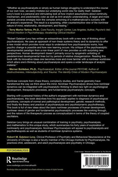 Starting with a personal history of the author's engagement with nonlinear dynamics and psychoanalysis, this book describes how his approach applies to diagnosis of psychological conditions, concepts of normal and pathological development, gender, research methods, and finally the theory and practice of psychoanalysis and psychodynamic psychotherapy. This book is full of new ideas about the basic nonlinear processes of human development, nonlinear views of gender and fundamental psychoanalytic process like working through, and the nature of the therapeutic process as conceptualized in terms of the theory of coupled oscillators. Galatzer-Levy questions many standard psychoanalytic formulations and points to a freer practice of psychoanalysis and psychoanalytic thinking. His new approach opens the reader's eyes to ways in which development and treatment can occur through processes not now included in standard psychoanalytic theory. The book not only provides useful theories but also helps readers take note of commonly passed over phenomena that were unseen for lack of a theory to explain them.