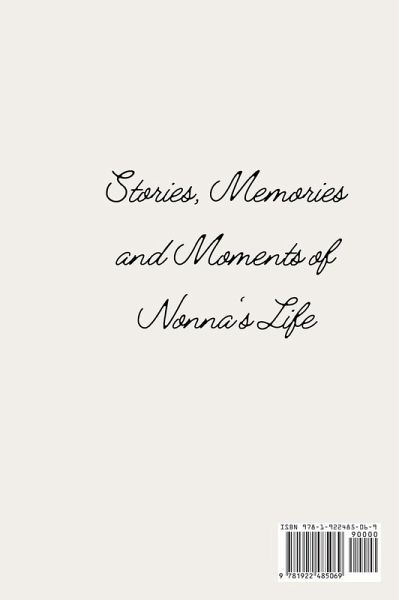 This is Nonna's opportunity to share her life story and memories in her very own guided journal that can be kept as a forever keepsake for generations to come. Learn all about Nonna's life and allow her to share those special stories and memorable moments with her children and grandchildren, reflecting back on moments in time that can often be forgotten between generations. 'Nonna's Journal - Her Untold Story' provides:Guided questions to help bring together the special memories and stories of life from birth, childhood, teenage years, having children, career and questions that may never have been asked before about her life before. Spaces to provide photos and special memories. Inspirational quotes throughout. A Family Tree template to add generational information. Hardback book option for durability. Plus, much, much more... 'Nonna's Journal - Her Untold Story' is the perfect gift for a birthday, Mother's Day or Christmas so she can share her love, memories, and importantly, a record of her life story in this beautiful journal.