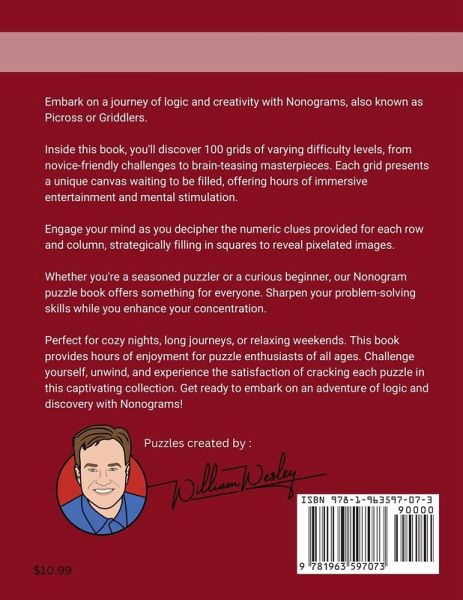¿¿Embark on a journey of logic and creativity with Nonograms, also known as Picross or Griddlers. Inside this book, you'll discover 100 grids of varying difficulty levels, from novice-friendly challenges to brain-teasing masterpieces. Each grid presents a unique canvas waiting to be filled, offering hours of immersive entertainment and mental stimulation. Engage your mind as you decipher the numeric clues provided for each row and column, strategically filling in squares to reveal stunning pixelated images. Whether you're a seasoned puzzler or a curious beginner, our Nonogram puzzle book offers something for everyone. Sharpen your problem-solving skills while you enhance your concentration. Perfect for cozy nights, long journeys, or relaxing weekends, this book provides endless enjoyment for puzzle enthusiasts of all ages. Challenge yourself, unwind, and experience the satisfaction of cracking each puzzle in this captivating collection. Get ready to embark on an adventure of logic and discovery with our Nonogram puzzle book today!