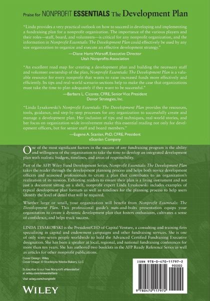 Whether large or small, your organization will benefit from Nonprofit Essentials: The Development Plan. This professional guide's nuts-and-bolts presentation equips your organization to create a dynamic development plan that fosters enthusiasm, cultivates a sense of confidence, and helps track success.