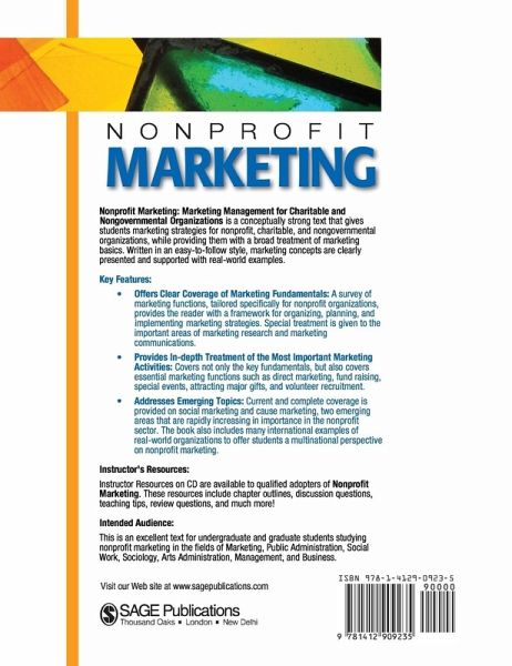 Nonprofit Marketing: Marketing Management for Charitable and Nongovernmental Organizations is a conceptually strong text that gives students marketing strategies for nonprofit, charitable, and nongovernmental organizations, while providin