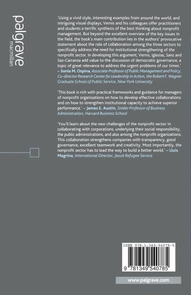 ALFRED VERNIS is Associate Professor of Business Policy and Lecturer on Public Management at ESADE, Barcelona, Spain, and is a member of the Social Council at the Spanish multinational, INDITEX. His areas of expertise are public private collaborations and strategic management. MARIA IGLESIAS has worked for several non-profit organizations and has been a researcher of the first White Paper on the non-profit sector in Catalonia, Spain. She has also worked as a consultant to nonprofit organizations assessing in areas such as human resources, strategic and project management. BEATRIZ SANZ has worked for several international organizations and international NGOs. Her areas of expertise include the training of not-for-profit organizations and the design, appraisal, monitoring, management and evaluation of international co-operation, good governance, decentralized co-operation and capacity building programmes. ANGEL SAZ-CARRANZA has worked with several nonprofit and governmental institutions in Europe, Africa, Latin America and Asia in Humanitarian Aid and International Development. He has also worked as a management consultant to public and nonprofit organizations in the social field.