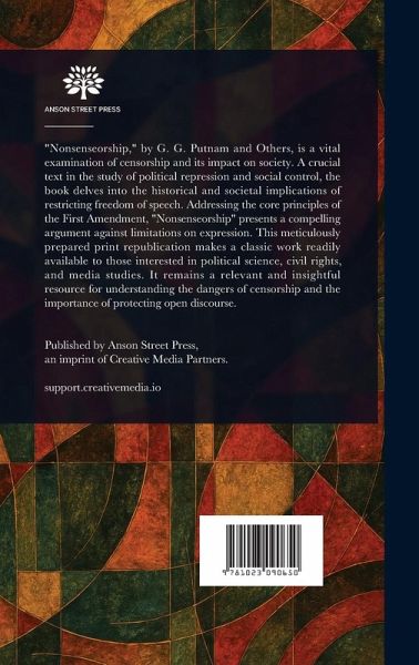 "Nonsenseorship," by G. G. Putnam and Others, is a vital examination of censorship and its impact on society. A crucial text in the study of political repression and social control, the book delves into the historical and societal implications of restricting freedom of speech. Addressing the core principles of the First Amendment, "Nonsenseorship" presents a compelling argument against limitations on expression. This meticulously prepared print republication makes a classic work readily available to those interested in political science, civil rights, and media studies. It remains a relevant…mehr