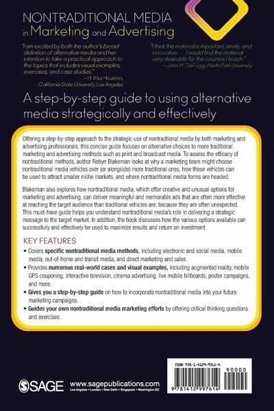 Nontraditional Media in Marketing and Advertising by Robyn Blakeman is a concise guide that offers a step-by-step approach to the strategic use of nontraditional media by both marketing and advertising professionals. The text focuses on methods used as an alternative choice to more traditional marketing and advertising methods such as print and broadcast mediums. To assess the efficacy of nontraditional methods, Blakeman looks at why a marketing team might choose nontraditional media vehicles over (or alongside) more traditional ones, how it can be used to attract smaller niche markets, and where nontraditional media is headed. Blakeman also explores how nontraditional media, which can offer creative and unusual options for marketing and adversiting, deliver meaningful and memorable ads that are often more effective at reaching the target audience than traditional vehicles, since they are often unexpected. Understanding nontraditional media and its role in delivering a strategic message to the target market requires professionals to understand what options are available and how they will be used, as well as the projected return on investment. This must-have guide is perfect for facilitating this understanding!