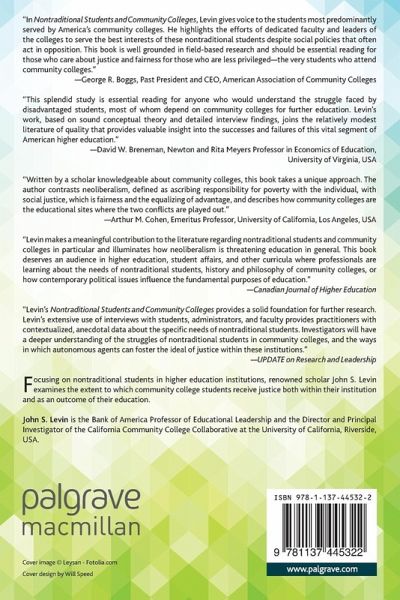 "In Nontraditional Students and Community Colleges, Levin gives voice to the students most predominantly served by America's community colleges. He highlights the efforts of dedicated faculty and leaders of the colleges to serve the best interests of these non-traditional students despite social policies that often act in opposition. This book is well grounded in field-based research and should be essential reading for those who care about justice and fairness for those who are less privileged the very students who attend community colleges." - George R. Boggs, President and CEO, American Association of Community Colleges