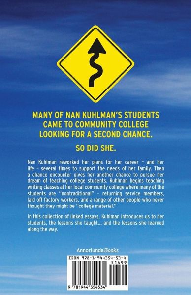 Many of Nan Kuhlman’s students came to community college looking for a second chance. So did she. Nan Kuhlman reworked her plans for her career—and her life—several times to support the needs of her family. Then a chance encounter gives her another chance to pursue her dream of teaching college students. Kuhlman begins teaching writing classes at her local community college where many of the students are "nontraditional"—returning service members, laid off factory workers, and a range of other people who never thought they might be "college material." In this collection of linked essays, Kuhlman introduces us to her students, the lessons she taught… and the lessons she learned along the way.
