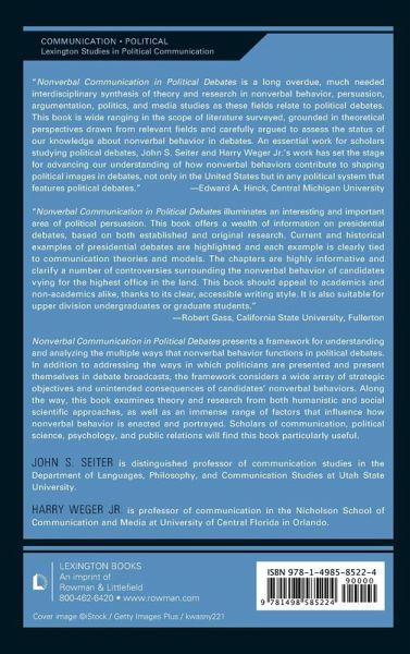 This book presents a framework for understanding the role of nonverbal behavior in political debates, including an examination of candidates' attempts to undermine opponents while presenting themselves as likeable. Theory and historical examples underline the importance of nonverbal elements in political contests.