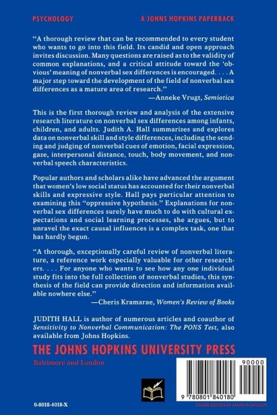 This is the first thorough review and analysis of the extensive research literature on nonverbal sex differences among infants, children, and adults. Judith A. Hall summarizes and explores data on nonverbal skill and style differences, including the sending and judging of nonverbal cues of emotion, facial expression, gaze, interpersonal distance, touch, body movement, and nonverbal speech characteristics. Popular authors and scholars alike have advanced the argument that women's low social status has accounted for their nonverbal skills and expressive style. Hall pays particular attention to examining this "oppressive hypothesis". Explanations for nonverbal sex differences surely have much to do with cultural expectations and social learning processes, she argues, but to unravel the exact causal influences is a complex task, one that has hardly begun.