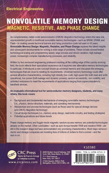 The manufacture of flash memory, which is the dominant nonvolatile memory technology, is facing severe technical barriers. So much so, that some emerging technologies have been proposed as alternatives to flash memory in the nano-regime. Nonvolatile Memory Design: Magnetic, Resistive, and Phase Changing introduces three promising candidates: phase-change memory, magnetic random access memory, and resistive random access memory. The text illustrates the fundamental storage mechanism of these technologies and examines their differences from flash memory techniques. Based on the latest advances, the authors discuss key design methodologies as well as the various functions and capabilities of the three nonvolatile memory technologies.