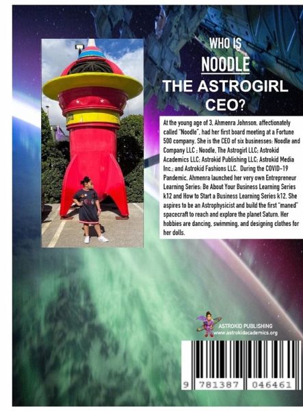 At the young age of 3, Ahmenra Johnson, affectionately called "Noodle", had her first board meeting at a Fortune 500 company. She is the CEO of six businesses: Noodle and Company LLC ; Noodle, The Astrogirl LLC; Astrokid Academics LLC; Astrokid Publishing LLC; Astrokid Media Inc.; and Astrokid Fashions LLC. During the pandemic, Ahmenra launched her very own Entrepreneur Learning Series: Be About Your Business Learning Series k12 and How to Start a Business Learning Series k12. She aspires to be an Astrophysicist and build the first "maned" spacecraft to reach and explore the planet Saturn. Her hobbies are dancing, swimming, and designing clothes for her dolls.