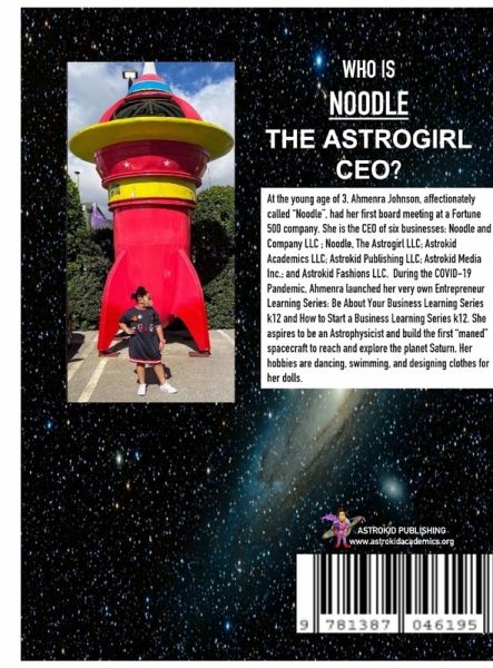 At the young age of 3, Ahmenra Johnson, affectionately called "Noodle", had her first board meeting at a Fortune 500 company. She is the CEO of six businesses: Noodle and Company LLC ; Noodle, The Astrogirl LLC; Astrokid Academics LLC; Astrokid Publishing LLC; Astrokid Media Inc.; and Astrokid Fashions LLC. During the pandemic, Ahmenra launched her very own Entrepreneur Learning Series: Be About Your Business Learning Series k12 and How to Start a Business Learning Series k12. She aspires to be an Astrophysicist and build the first "maned" spacecraft to reach and explore the planet Saturn. Her hobbies are dancing, swimming, and designing clothes for her dolls.