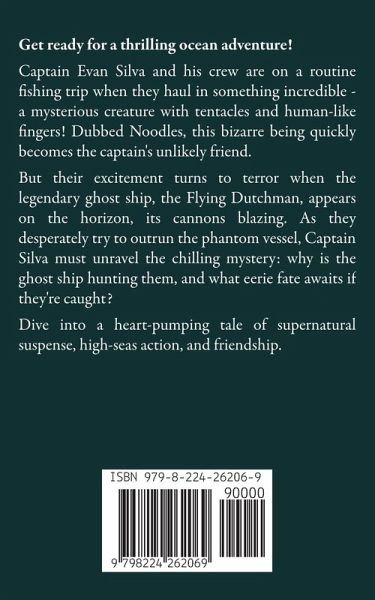 Get ready for a thrilling ocean adventure! Captain Evan Silva and his crew are on a routine fishing trip when they haul in something incredible - a mysterious creature with tentacles and human-like fingers! Dubbed Noodles, this bizarre being quickly becomes the captain's unlikely friend. But their excitement turns to terror when the legendary ghost ship, the Flying Dutchman, appears on the horizon, its cannons blazing. As they desperately try to outrun the phantom vessel, Captain Silva must unravel the chilling mystery: why is the ghost ship hunting them, and what eerie fate awaits if they're caught? Dive into a heart-pumping tale of supernatural suspense, high-seas action, and friendship. If you love spine-tingling stories by Neil Gaiman, Jonathan Auxier, or Katherine Rundell, you won't want to miss "Noodles"!