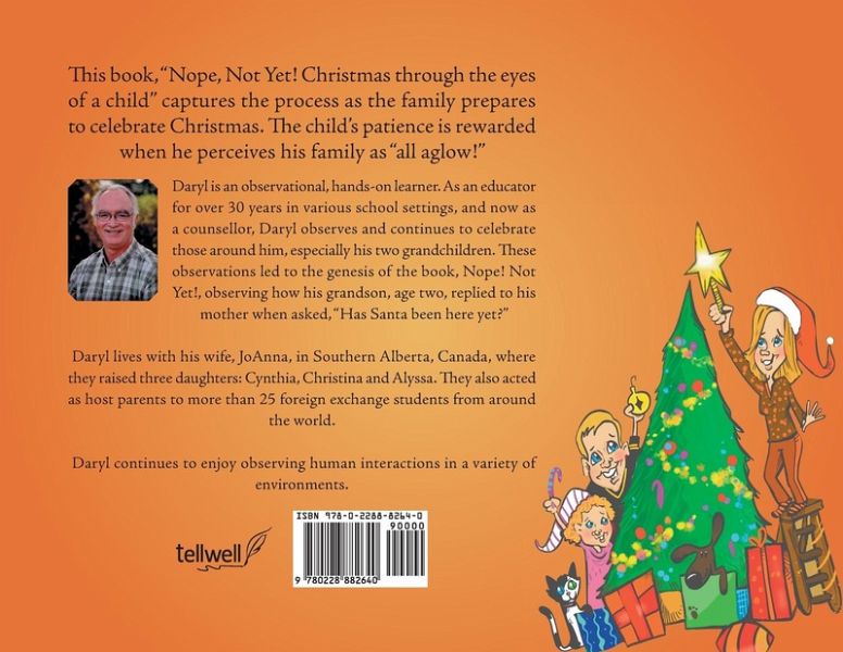 Daryl is an observational, hands-on learner. As an educator for over 30 years in various school settings, and now as a counsellor, Daryl observes and continues to celebrate those around him, especially his two grandchildren. These observations led to the genesis of the book, Nope! Not Yet!, observing how his grandson, age two, replied to his mother when asked, "Has Santa been here yet?"Daryl lives with his wife, JoAnna, in Southern Alberta, Canada, where they raised three daughters: Cynthia, Christina and Alyssa. They also acted as host parents to more than 25 foreign exchange students from around the world.Daryl continues to enjoy observing human interactions in a variety of environments.