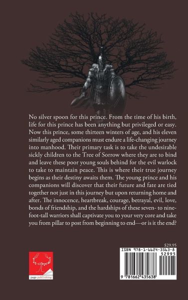 No silver spoon for this prince. From the time of his birth, life for this prince has been anything but privileged or easy. Now this prince, some thirteen winters of age, and his eleven similarly aged companions must endure a life-changing journey into manhood. Their primary task is to take the undesirable sickly children to the Tree of Sorrow where they are to bind and leave these poor young souls behind for the evil warlock to take to maintain peace. This is where their true journey begins as their destiny awaits them. The young prince and his companions will discover that their future and fate are tied together not just in this journey but upon returning home and after. The innocence, heartbreak, courage, betrayal, evil, love, bonds of friendship, and the hardships of these seven- to nine-foot-tall warriors shall captivate you to your very core and take you from pillar to post from beginning to endor is it the end?